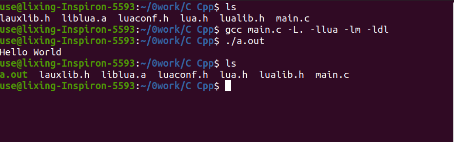 在lua的全部编译文件里,我们并不需要lua和luac两个文件,我们需要的就4个头文件和1个动态库文件。我们希望自己写一个C语言进程,这个进程来调用lua脚本满足C的一些需求。