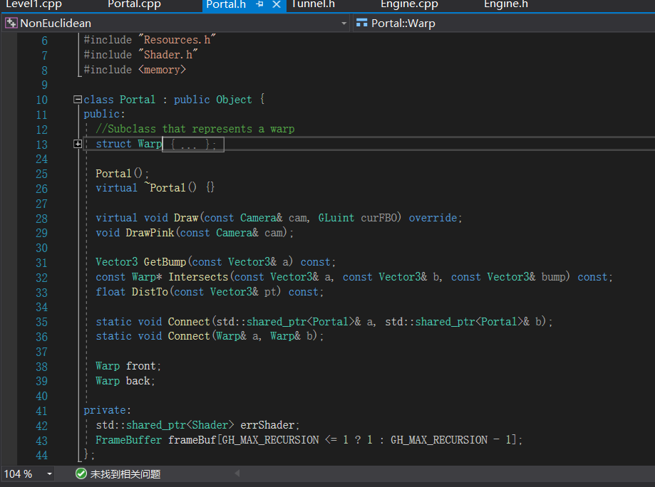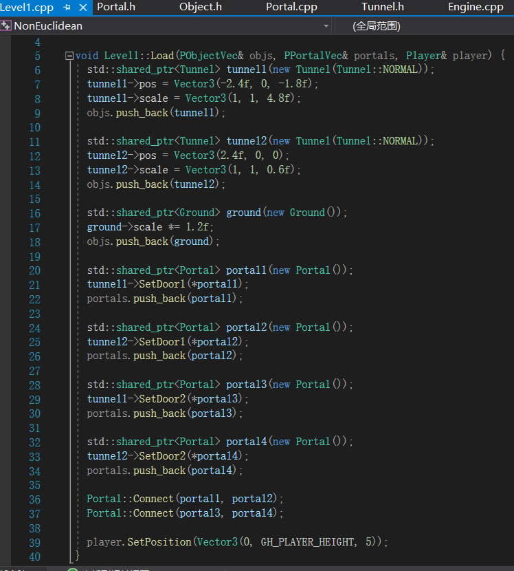 直接给结论,这大概和非欧几何没有关系。这个项目的关键部分是下面这个Portal类,