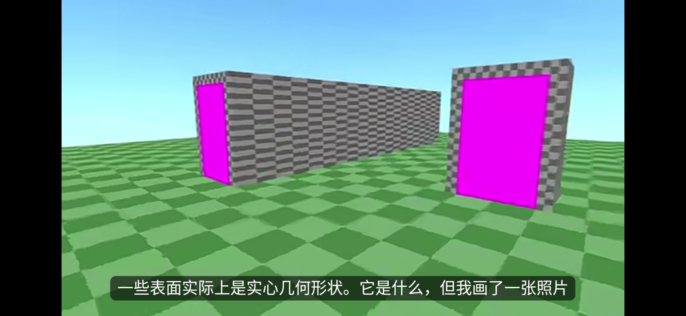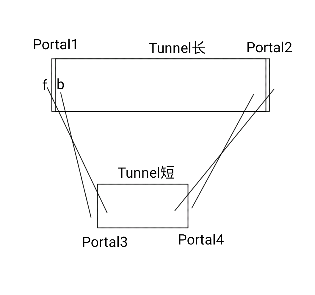 即玩家体积过大,进不了小洞口,而Portal的处理则与Portal的功能相关。所谓Portal实际上是一个传送门,而这个传送门可以看到对面的景象,我们拿第一个例子来说明,演示如下