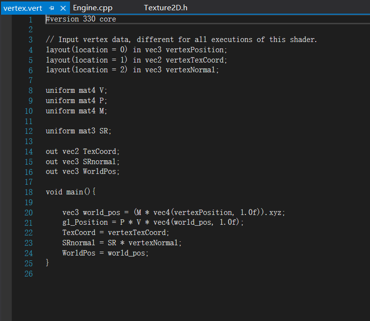 终于回到了这个项目,我要提前说一点,我对这个项目的光相关内容存在质疑,所以我们不考虑这部分,至于原因,先看看我对几何部分的说明。几何部分内容主要集中在顶点着色器上,我们来稍微看一眼,