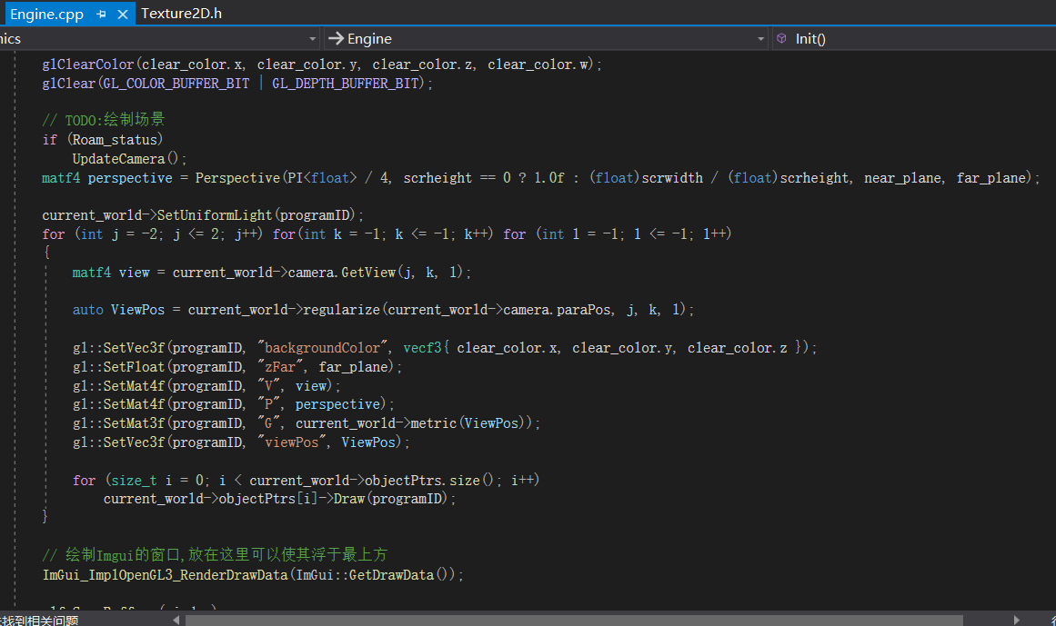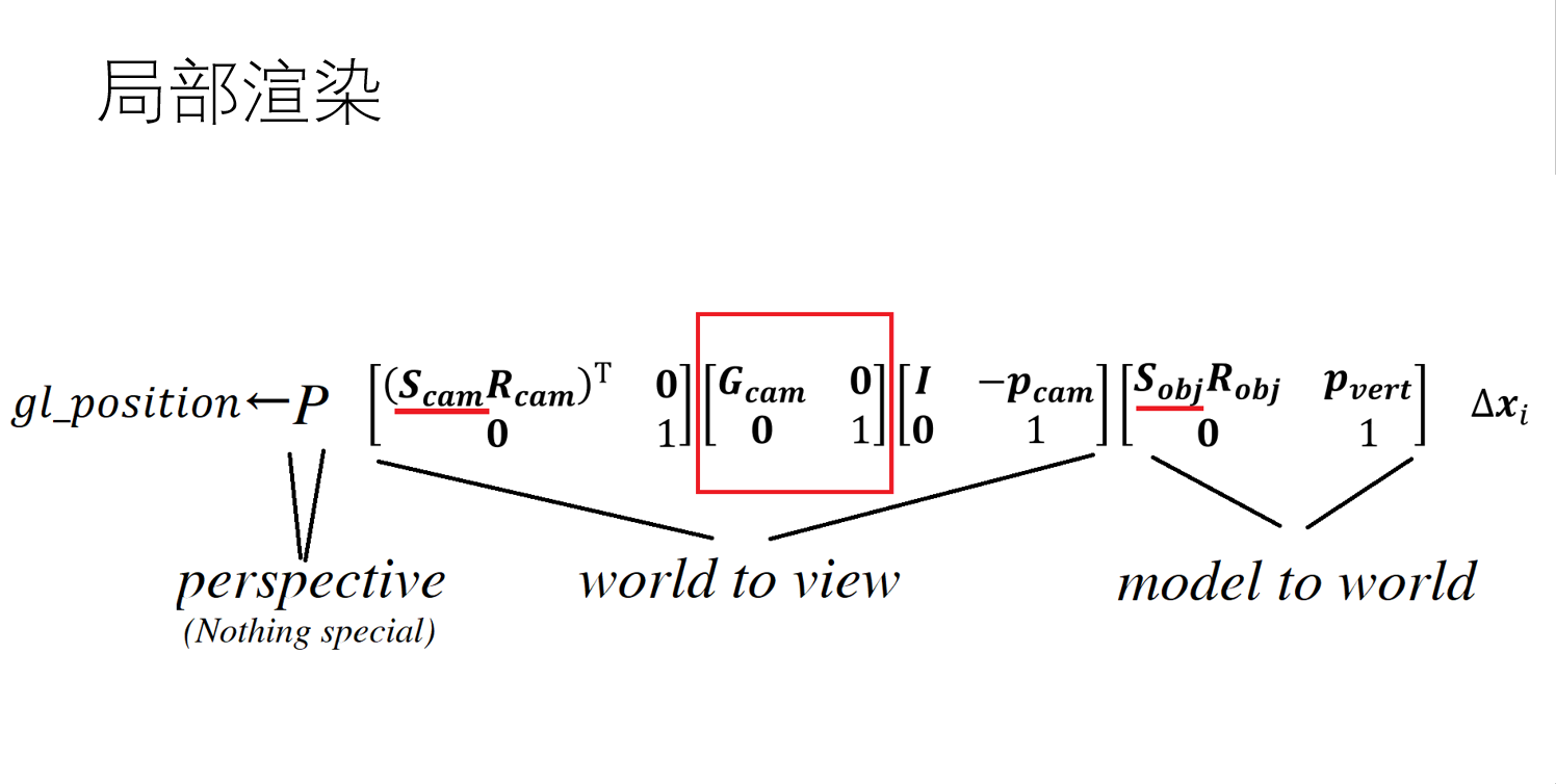 从中我们可以知道,作者只改变了视图矩阵和模型矩阵,这点也可以从代码中得到证实