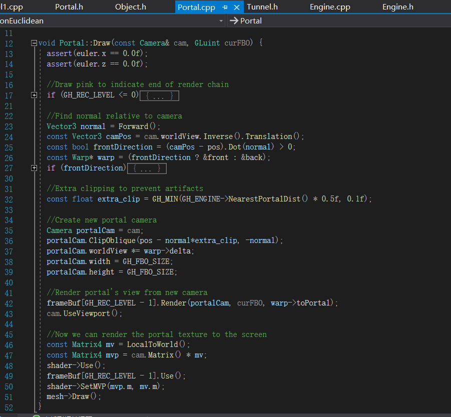 作者也提了一下Portal的原理,但讲得不是很深就是了。至此项目分析的差不多了,从纯数学的角度,它不是非欧几何,因为物质影响空间的性质并不合理,而应当是更纯粹的几何才对,当然你要和我说广义相对论的话,我只能说我了解的不够深入。