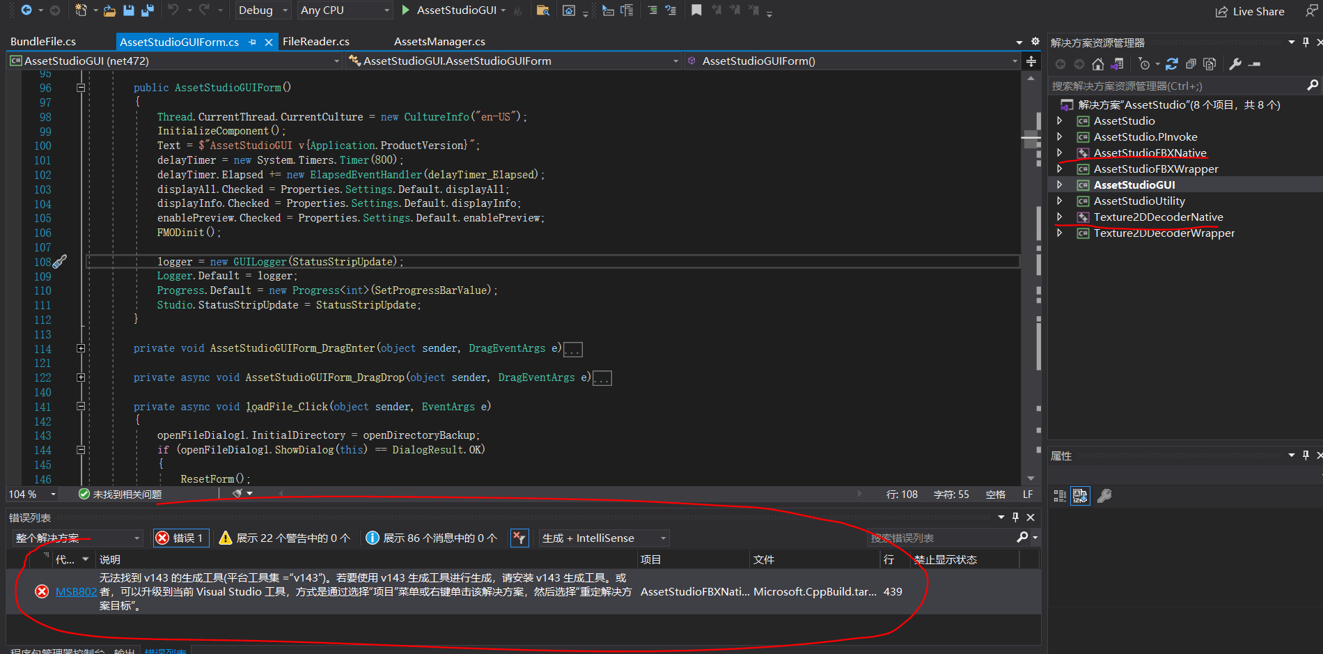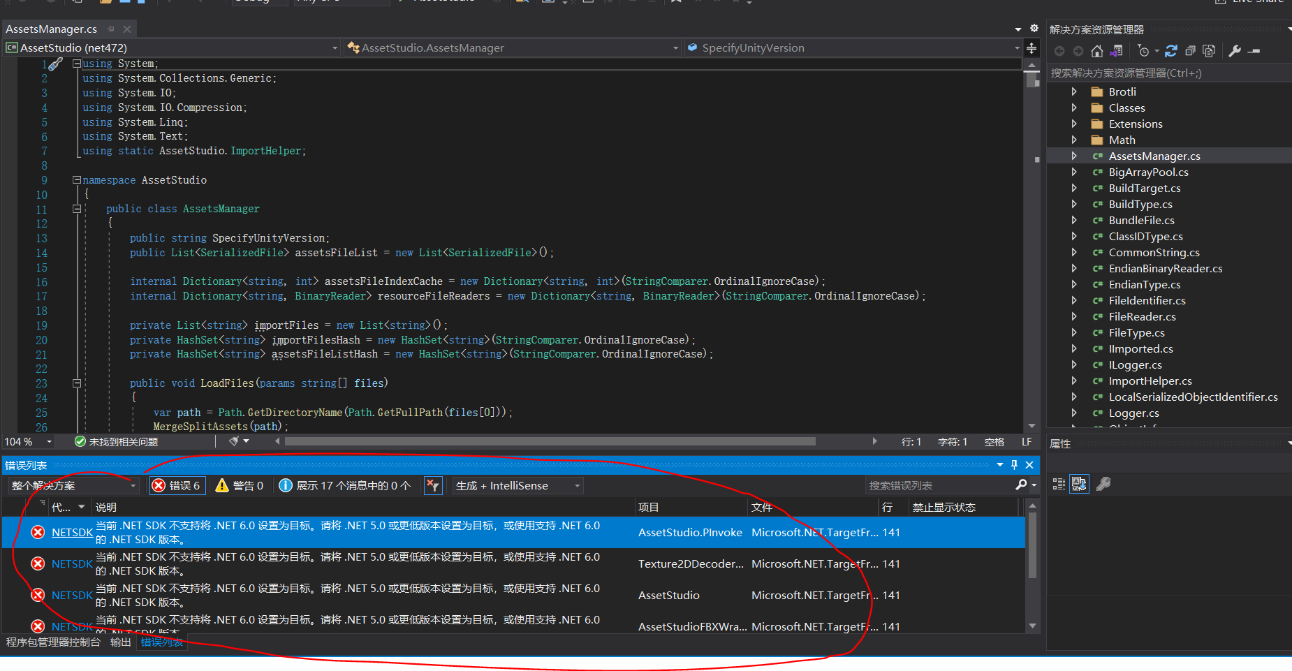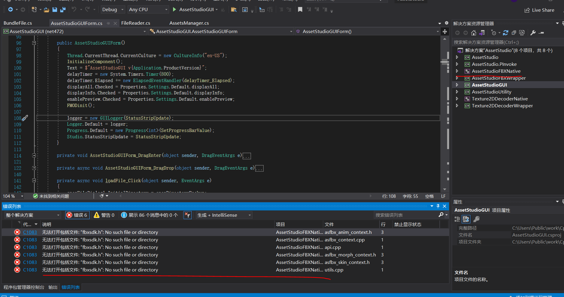 既然要以AssetStudio为基础,了解其大体构架是必需的。先尝试把程序顺利编译,以保证后续可以跟踪研读,笔者比较不幸一开始就遇到了问题