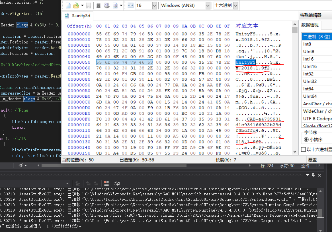 从地址0x50开始,出现了无压缩BundleAssets的特征,那么我们尝试改变读取的初始地址看一下是否可行