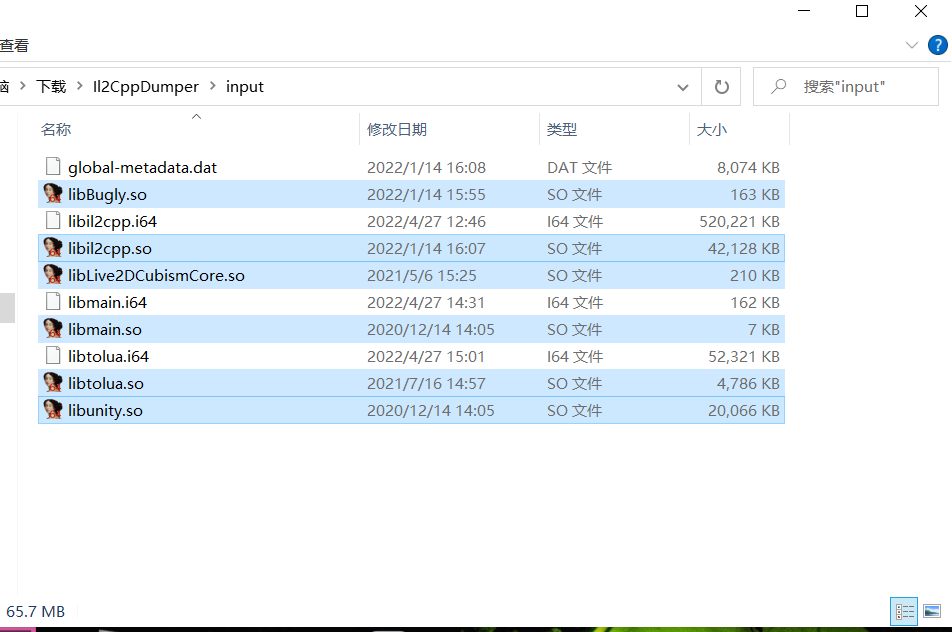 注意里面只有以so结尾的才是原来的动态库,以i64结尾的是IDA动态库分析产生的数据库打包文件,global-metadata.dat是从程序资源文件中拿过来的,如果是安卓的话,应该位于解包后文件的这个位置“assets/bin/Data/Managed/Metadata”。这个文件来源于il2cpp的运行机制,il2cpp将C#的中间码往机器码转义的时候,两者的函数调用机制不同,机器码通过寻址实现,而一般面向对象语言都是基于全局函数表,说太多很复杂,笔者也没有很深入理解底层。本身来说能编译为机器码的大多都是C系的语言,C#和大多语言都是一样,依靠的是中间码和运行环境,静态分析的时候IDA不会以C#来理解机器码,而是以C系语言来分析,所以这个对照文件是必需的。