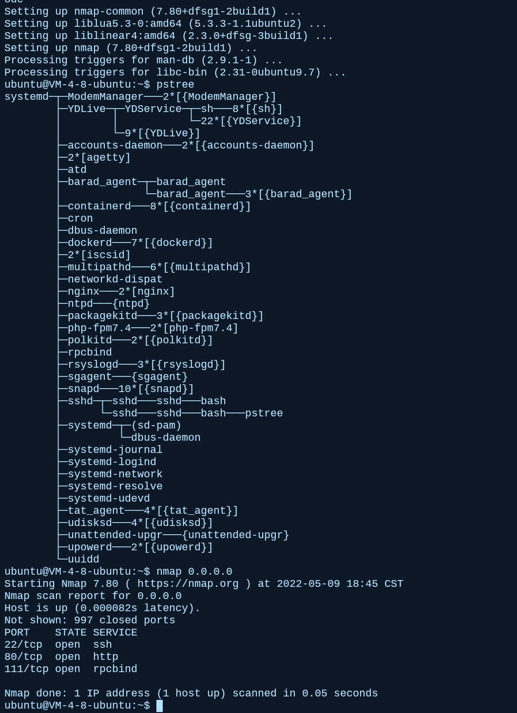 nginx和php-fpm是提供http协议服务的,默认绑定的是80端口,sshd提供的是ssh服务,就是我拿来远程连接的端口,默认绑定22端口,systemd就是顶级的内核进程,所谓的后台进程,实际是将本来由当前创建的子进程,交给内核进程来处理,使不处于当前控制台下。