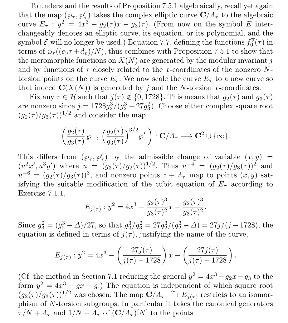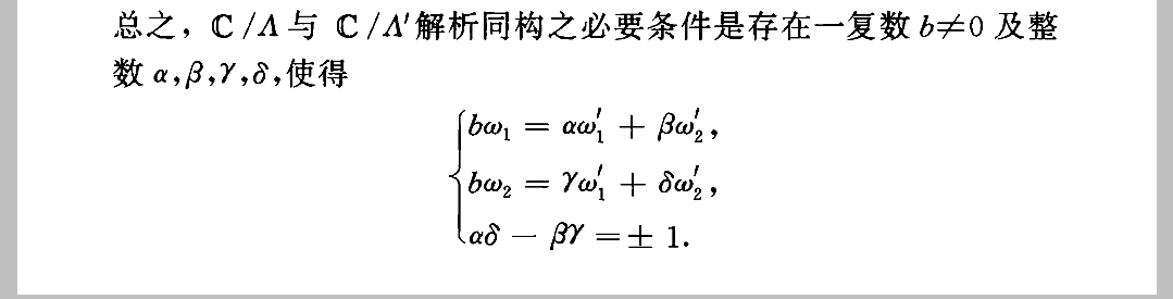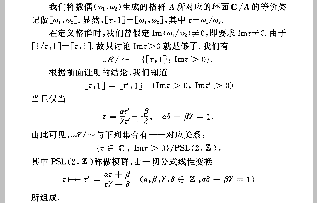 所以C/∧可以视为C上椭圆曲线,另一个问题C上椭圆曲线都可以视为一个环C/∧吗?我们只考虑等价椭圆曲线类的一个代表元