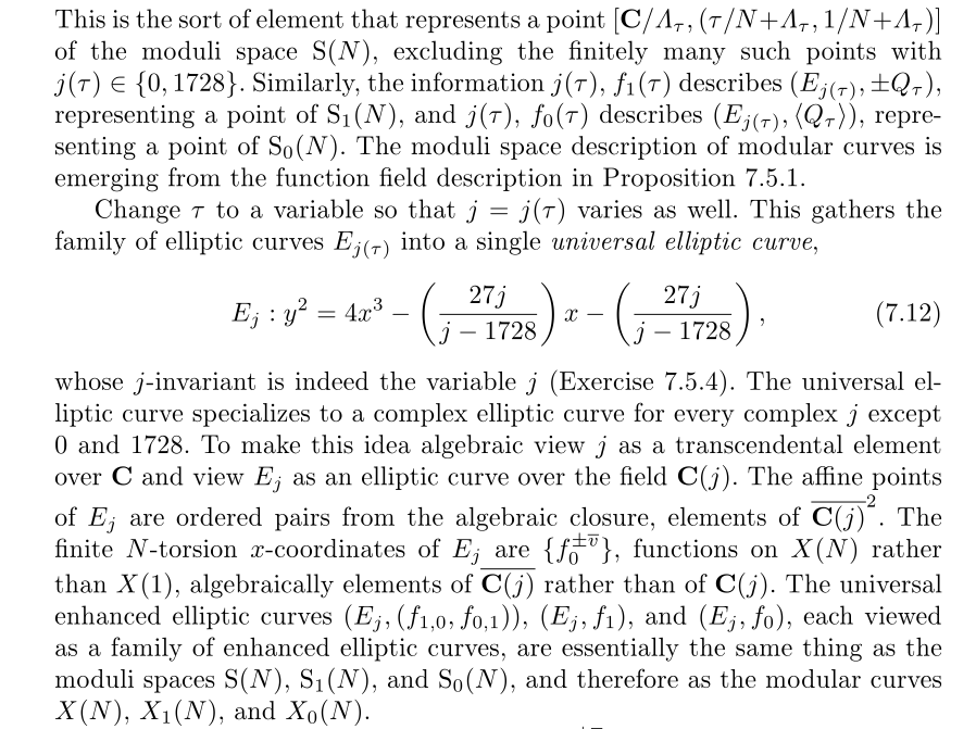 接着我们要将这样的构造应用到模曲线导出的环面上,过程其实没啥好说的,跟椭圆曲线的构造过程基本一样,首先是模曲线