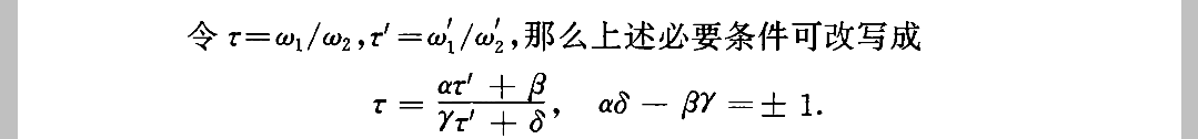 由于我们假设了上半平面,所以矩阵的行列式等于-1的情况可以排除,原书也进行了相应的申明
