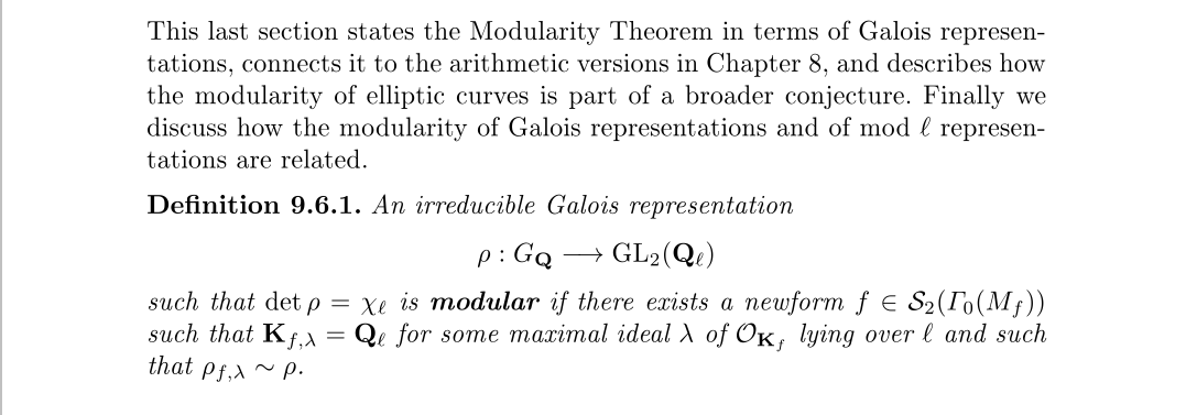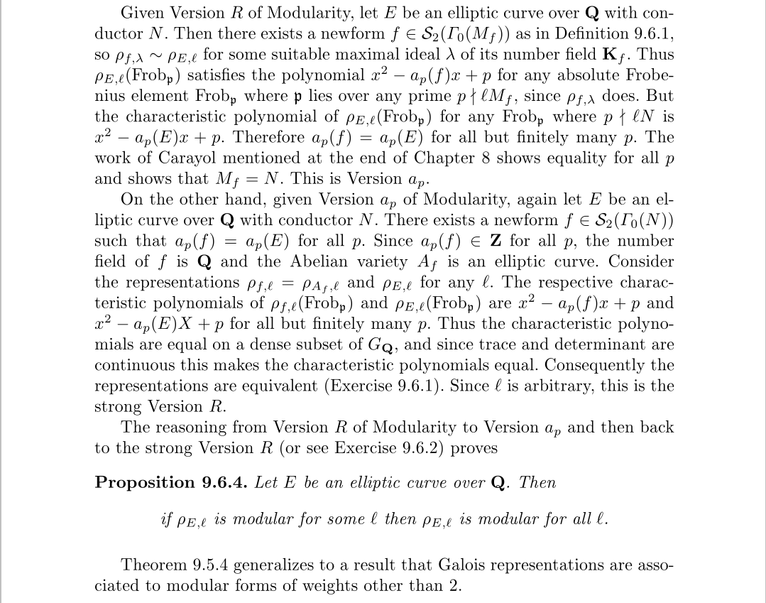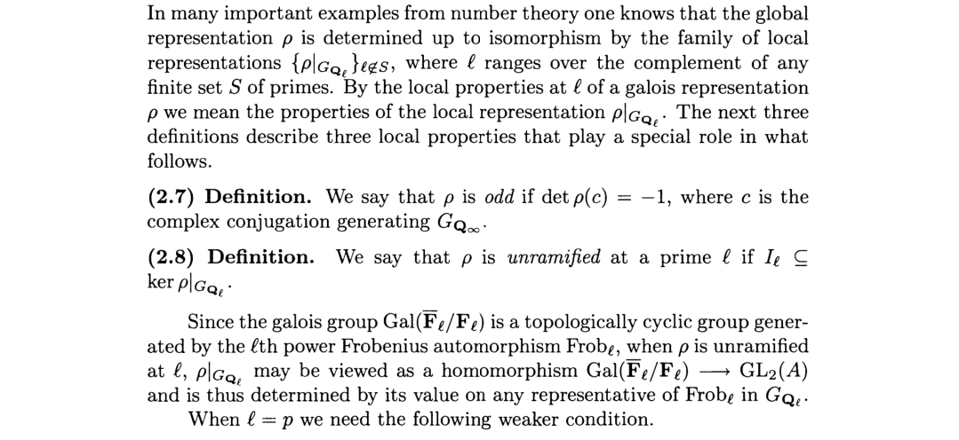 其实椭圆曲线和模形式导出的表示都有这个性质,但表示等价并不能保证这个性质,所以才给它加上的。由此我们可以得到模性定理的最终表述