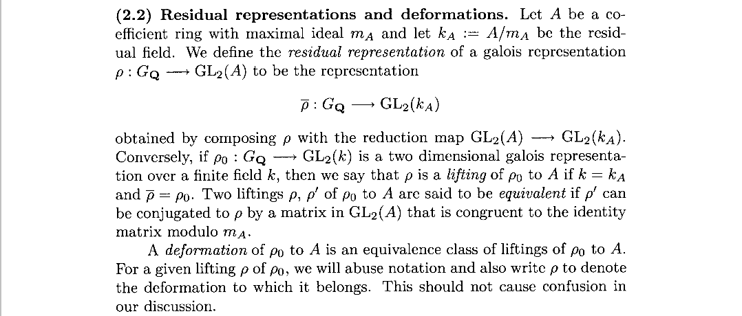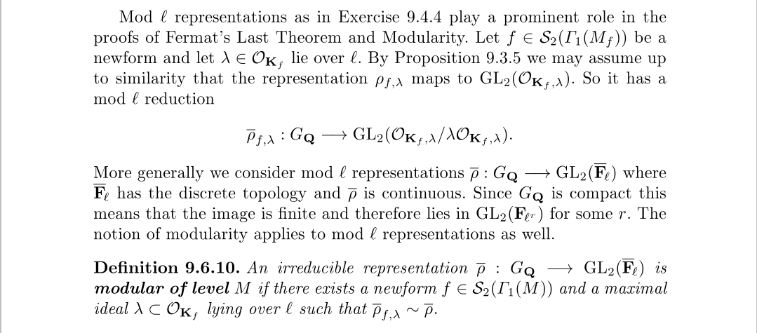 基本上大差不差的,把对应由模形式导出的表示也约化就可以了。由于我们不考虑模性定理的证明,所以对于引进约化表示,我们主要为了费马大定理,这样可以借助之前对椭圆曲线的研究,来得到约化表示的性质