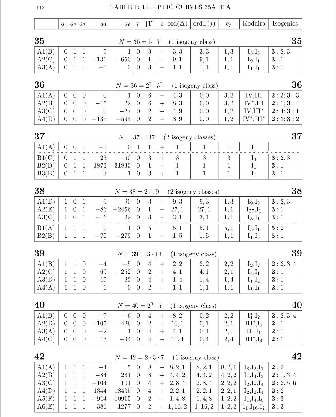 比如,导子N=38对应的椭圆曲线有2个同源类,其下面分别有3个同构类和2个同构类。