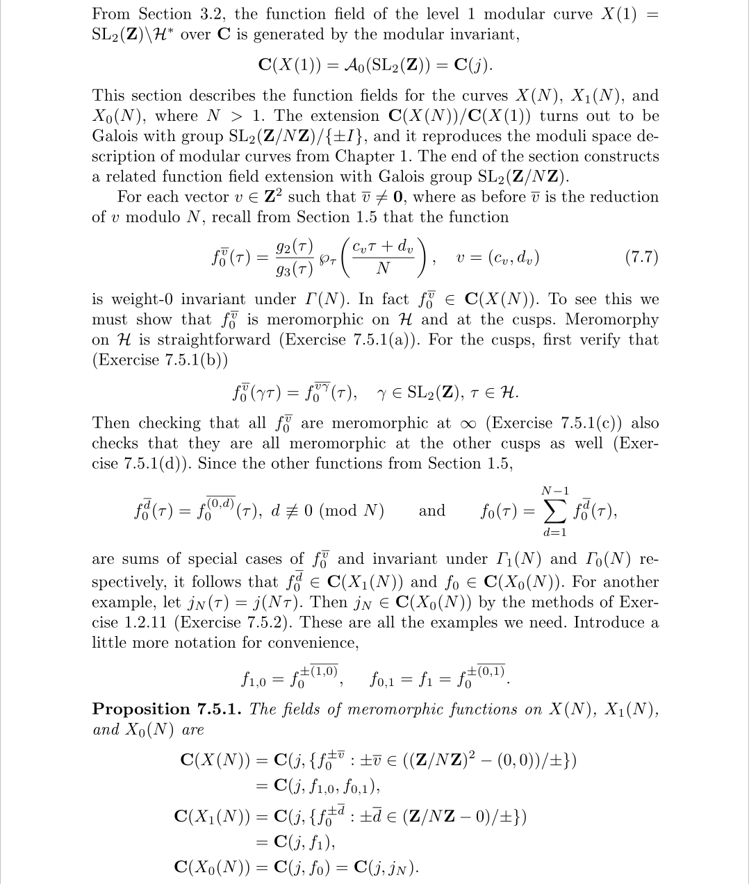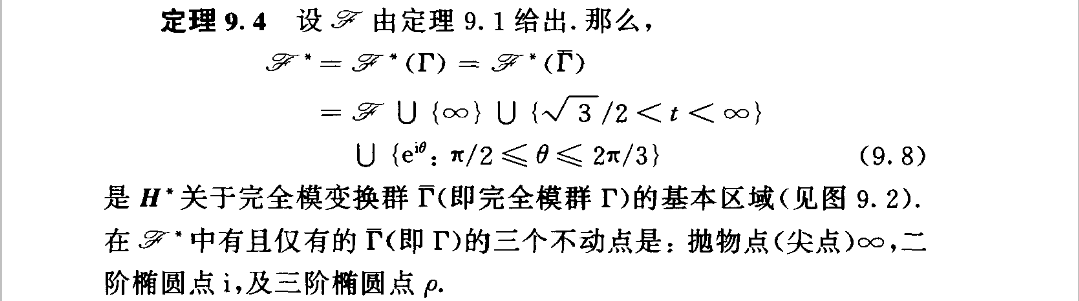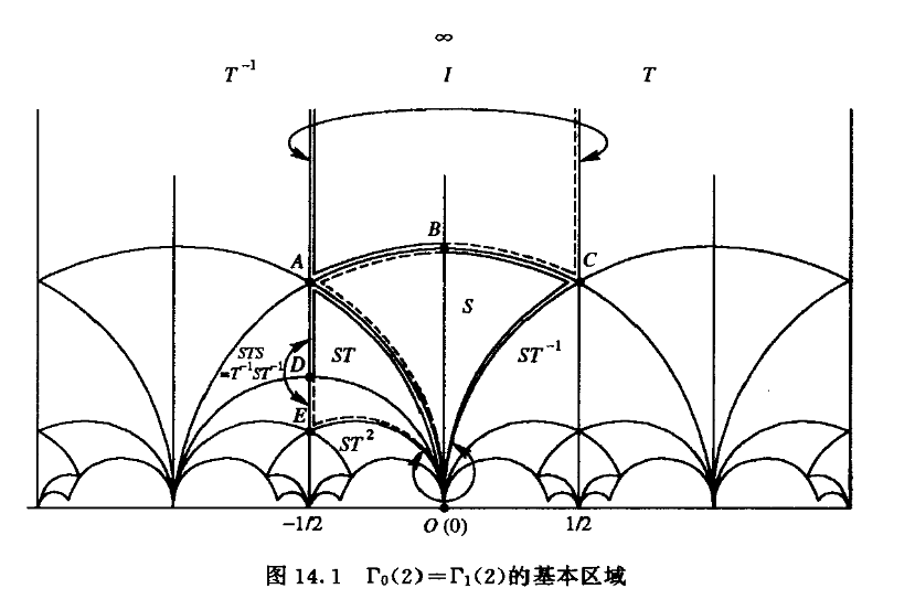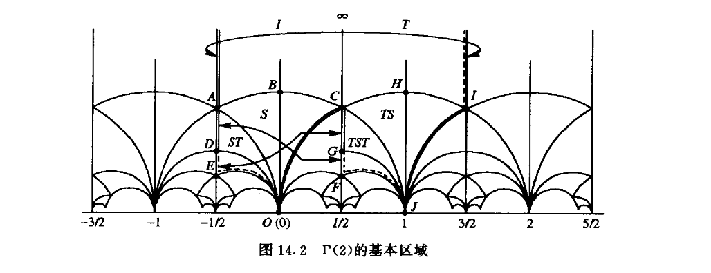 我们要看的只有最后一部分,前面是在告诉你如何把需要的函数给构造出来。其中C(X)表示模曲线X上亚纯函数的集合,而C(函数1,函数2,…)则表示通过这些函数四则运算构成的域的集合,换言之即这些函数的有理函数构成的集合。从中可以看出不少信息,如同余子群越小,则基本区域越大,符合要求的函数自然也就越多,大概因为只有多才能研究出更多东西,所以我们不会只研究完全模群。