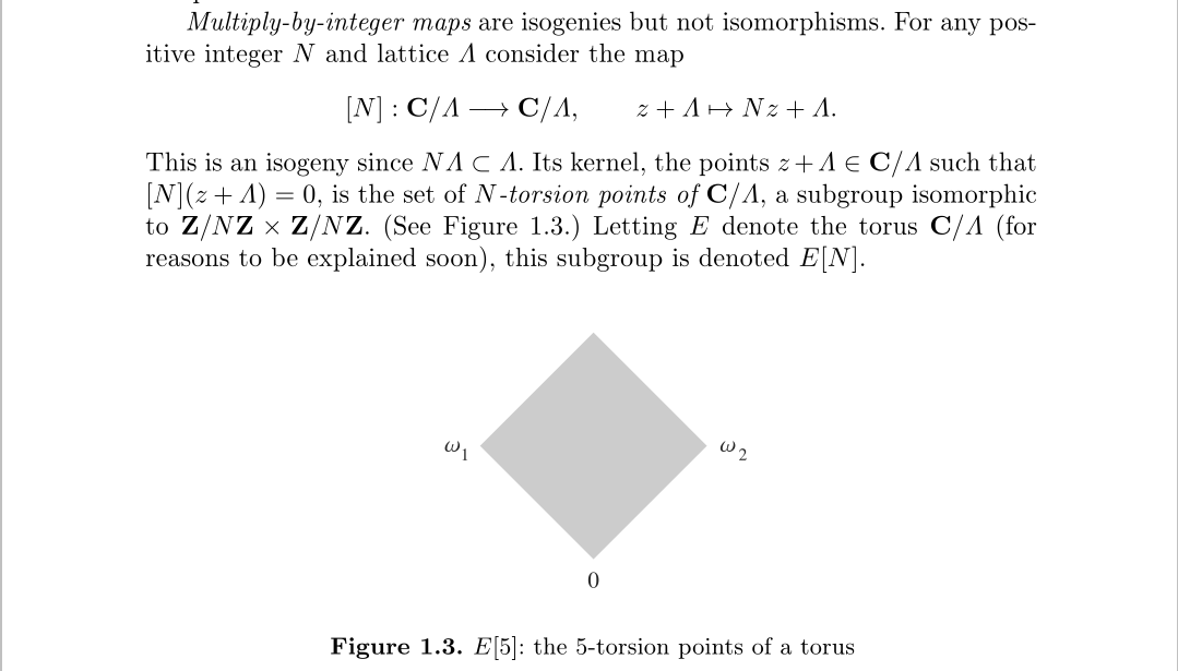 如果我们想对应到椭圆曲线的话,就需要同源再增加一些要求,这样椭圆曲线的种类就会越多,才能在直觉上形成对应,那么该怎么加要求呢?对于映射,加要求的一种方式就是点的固定,椭圆曲线上哪些点被固定是我们想要的呢?我们从复环面上来找这些点