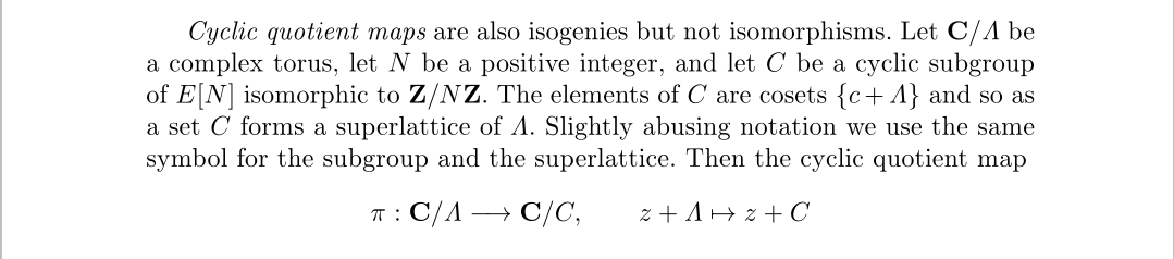 看不懂没关系,其实这就是一个在原来同源的前提下,加上了保持椭圆曲线上的一个循环群的条件,这个循环群其实很好找,在N×N的N扭点中取一行或一列即可,此时这些点在环面加法下可以形成一个N阶循环群。其次是第二种