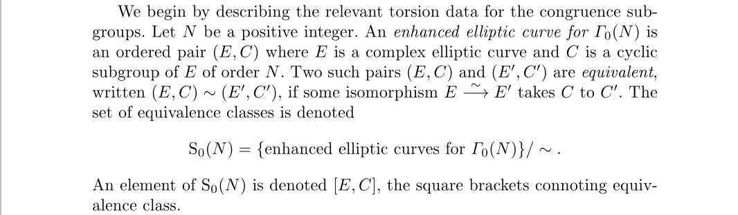 如果看不懂,问题也不大,你只要知道它实际上是一些同余子群与一些椭圆曲线等价类的对应关系即可,就和我们之前由完全模群建立的对应关系是类似的。