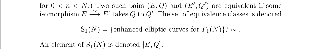 这里实际是由N扭点组成的一个集合,值得注意的是保持一个集合比保持一个点是更弱的,因为保持一个集合并不是保持集合里的每个点而是保持集合内的点仍是集合内的点。通过这些点我们来构造同构椭圆曲线的等价类,首先是第一类