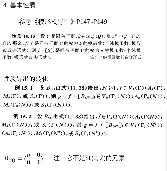 即然确定了维数,接下来的目标自然是寻找基了,对于所有的同余子群可能并不好找,但对于一些特殊且重要的同余子群还是可以找到的,首先是转化性质