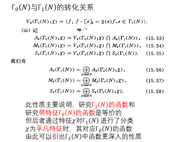 一下子似乎涌入了不少概念,我们来解答一下,首先我们考虑的是同余子群,其包含的元素更少,函数受到的约束也更少,所以我们将拥有更多的函数,所以第一条我们让