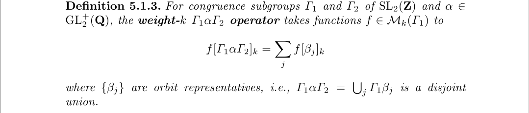 这实际就是我们之前所见到的模形式定义所用的的变换,模形式的一个条件就是在这种变换下不变,在此基础上进一步有陪集变换