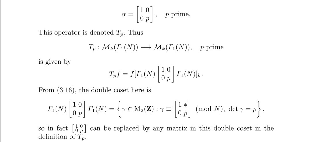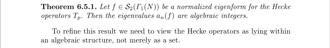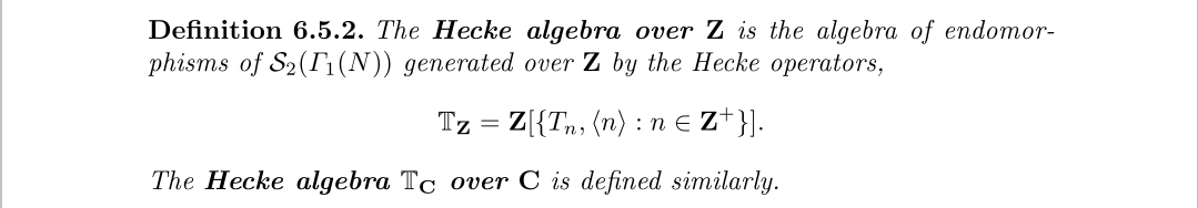 我们来扩展一下Hecke算子的数量,并让它关于之前的乘法和加法形成一个环,并补上数乘形成一个代数