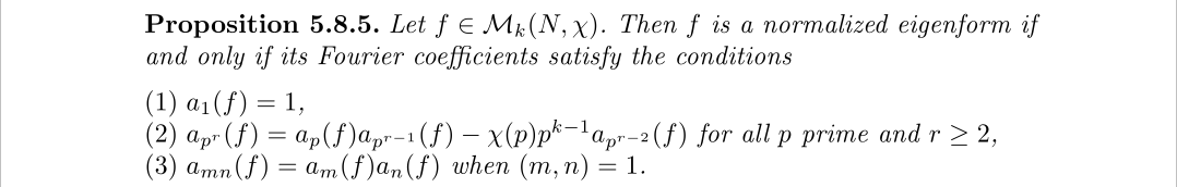它表明了,正则特征形式的傅里叶系数可以由素数情况完全确定,所以说模形式与数论存在联系也不足为怪。