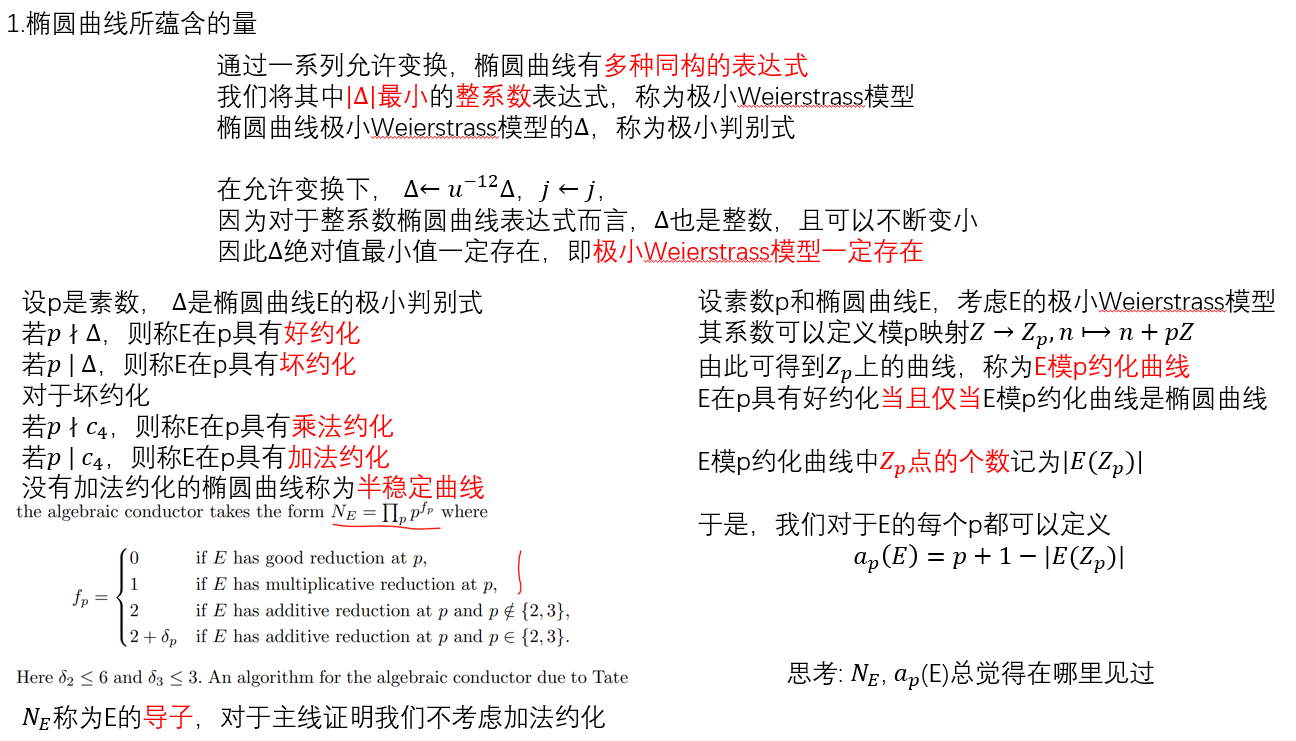 即模形式的几个特征数可能与椭圆曲线的一些数存在定量的关系,我们可以轻易地将它们定义出来