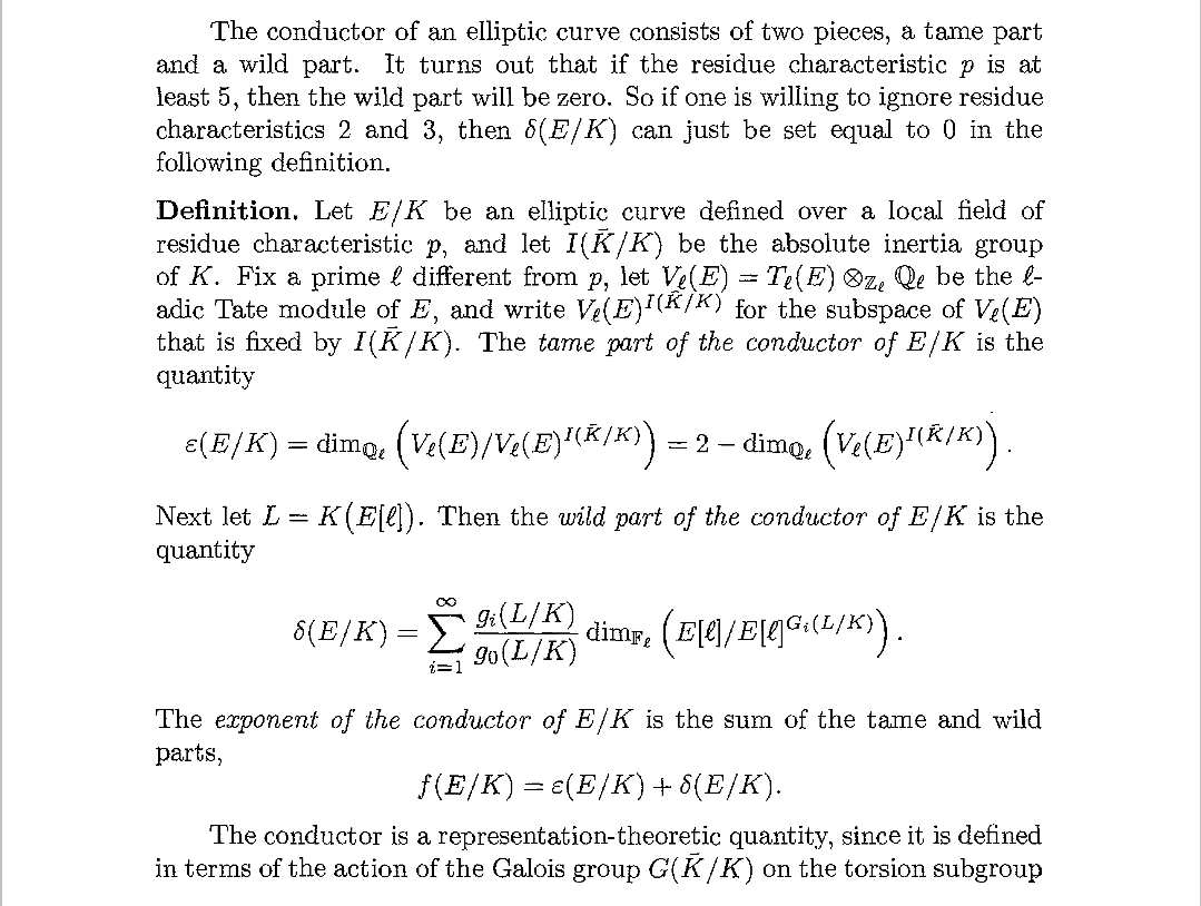 按照椭圆曲线导子的作用,它有tame和wild两个部分,而2,3的时候不确定的正是wild部分,更具下面的一些研究