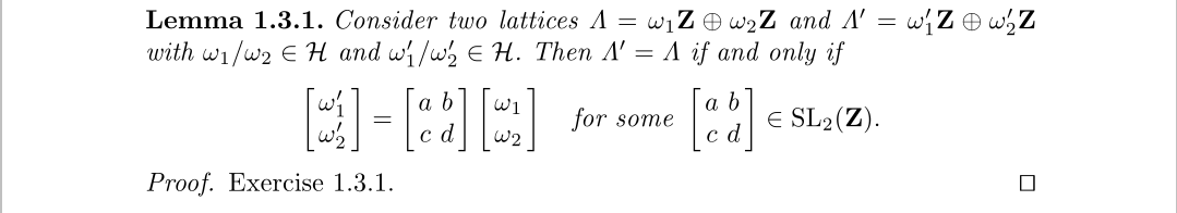 平移存在两种情况,一种是格点到格点,其本质就是乘一个复数,但格点和非格点间的平移,不能满足群同态的基本性质,即单位元到单位元。当然了,我们只需遵循这样的直觉即可,两个环面解析同构意味着它们的格差一个非零复数,我们将解析同构的环面称为是同源的,必需指出的是这里解析同构和同源正好一样只是一个巧合,对于高维的复环面还有其它的定义,进一步两条椭圆曲线对应的复环面同源,则称这两个椭圆曲线同源。我们能找到所有的同源等价类吗?实际就是对格
