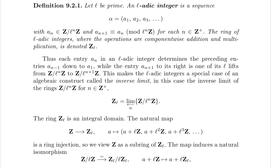 当然这还不够,我们还需要认识两个东西,p进整数和剩余表示,它涉及了一种p进数的构造法,p进数看起来其实比较魔幻,并不像实数一样给人一种实在的感觉,下面是p进整数的定义