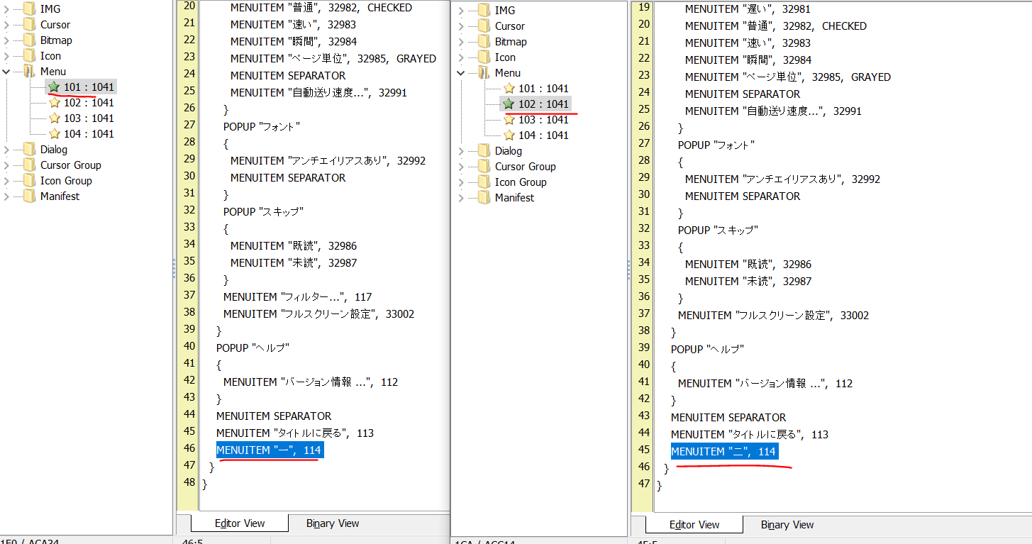 通过探索我们发现有两个一样的menu,那么游戏读取的是哪个呢?只要制造差异就行了,像下面这样修改两个配置文件