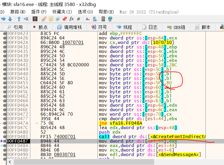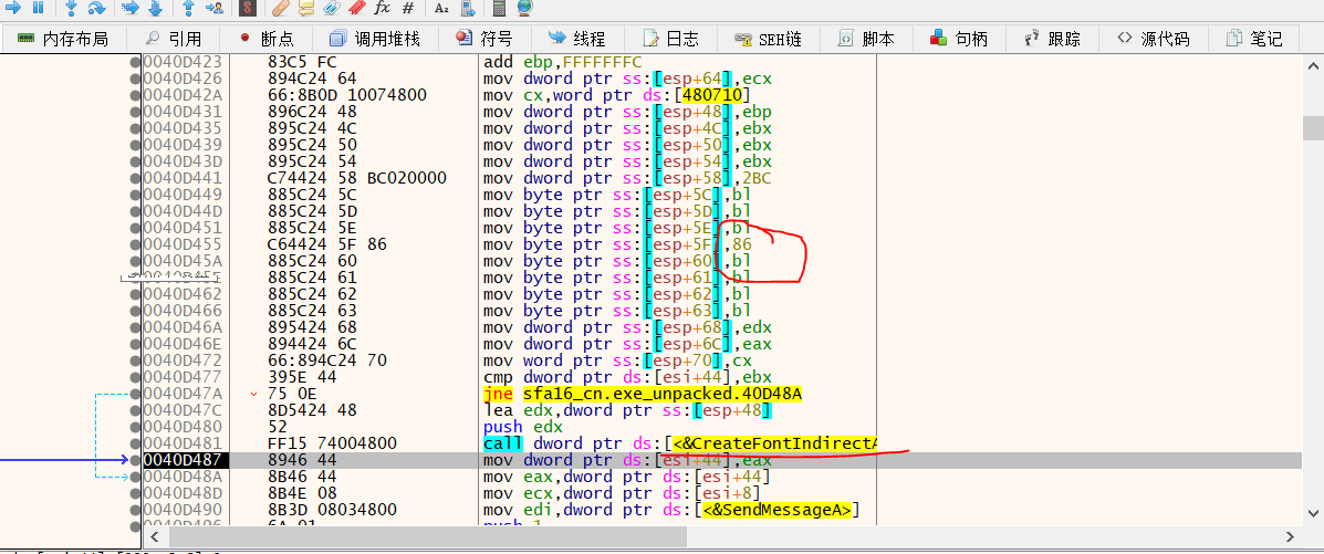 在调用的参数中,我们发现字体编码对应的16进制代码页是86,也就是GBK,而原来的游戏可以发现是80,即对应Shift_JIS,如我们所预料