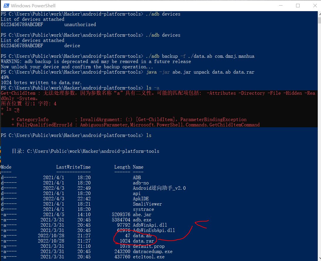 在没有root的前提下,对此你得知道一点,现在要root是十分困难的一件事,首先官方不提供recovery模式,你得刷第三方rec,而此时你一般需要向产商要BL解锁入口,这样你会失去保修,手机可能变砖,不过更要命的是它会清除所有数据,那就没备份的必要了。有root肯定可以畅通无阻,但没root的话,我们唯一能移动的数据只有/sdcard/Android/data内的数据,虽然它看起来是数据的大头,2.92G的漫画数据都在里面,但是问题是不能识别。比如前不久我玩过的summerpocket,你安装后把数据移进去再运行是不可行的,你必须先运行一下更新系统内的数据,再移动外部数据才行。通常情况下/data/app和/data/user/0才是软件的核心数据,只有将它们复原才能实现完美备份,其实只要有后者就够了,前者是死数据一安装就有了,不过在以前安卓版本/data/data。我们只能在权限上做功夫,shell权限就是一个很好的工具,它在root之下却在我们一般用户的权限之上,通过adb工具的adb backup完成,但事实却是