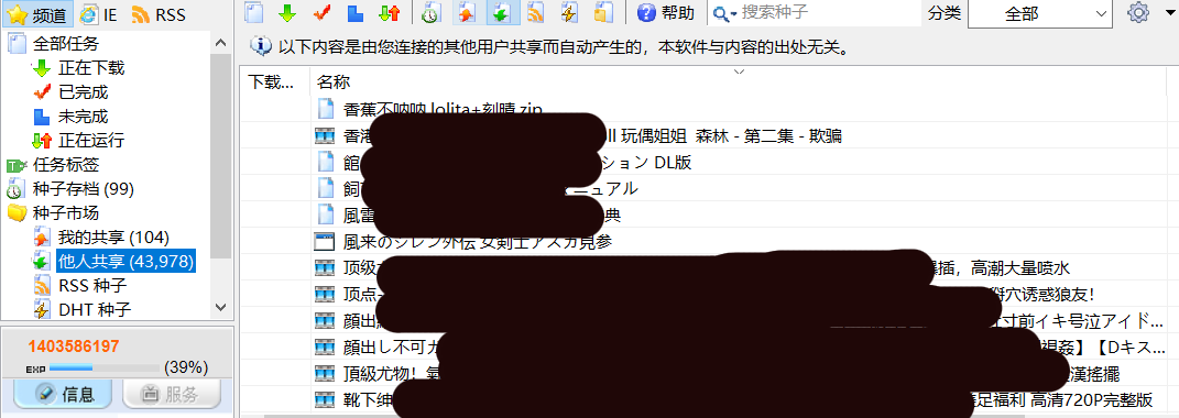 这就是我种子用多后的结果,我自己本身没下多少东西,但是由于p2p网络的运行机制,导致我们交换的时候会种子互传,结果一下子资源索引就翻了几百倍还不止。这还没完,通过学习资料的水印标签等,又可以链接到其它地方去,反反复复以后,我们就可以得到一个巨大的互联网了。最后,就是尽情地体会互联网所带来美妙吧,其实还有更多的东西,但只要一旦领进了门,其它的东西就都可以无师自通了,还有千万千万不要忘记你进入互联网的初衷是什么。